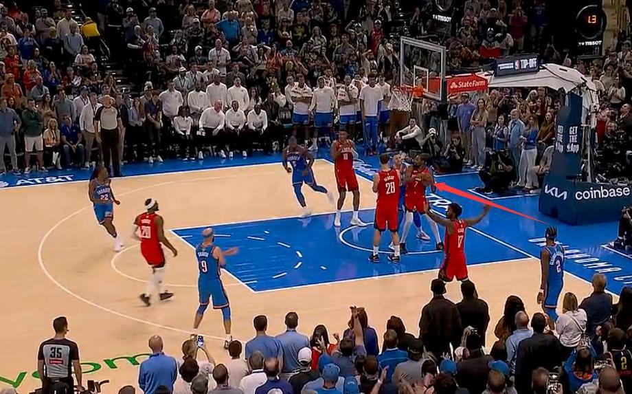 SGA絕殺不中,杜蘭特保護了後場籃板,這時候火箭已經沒有暫停了,杜蘭特比了一個暫停的手勢,杜蘭特本該喫一個技術犯規,但裁判沒有給,雷霆主帥戴姆波特十分憤怒衝入場內,但裁判說比賽已經結束了。