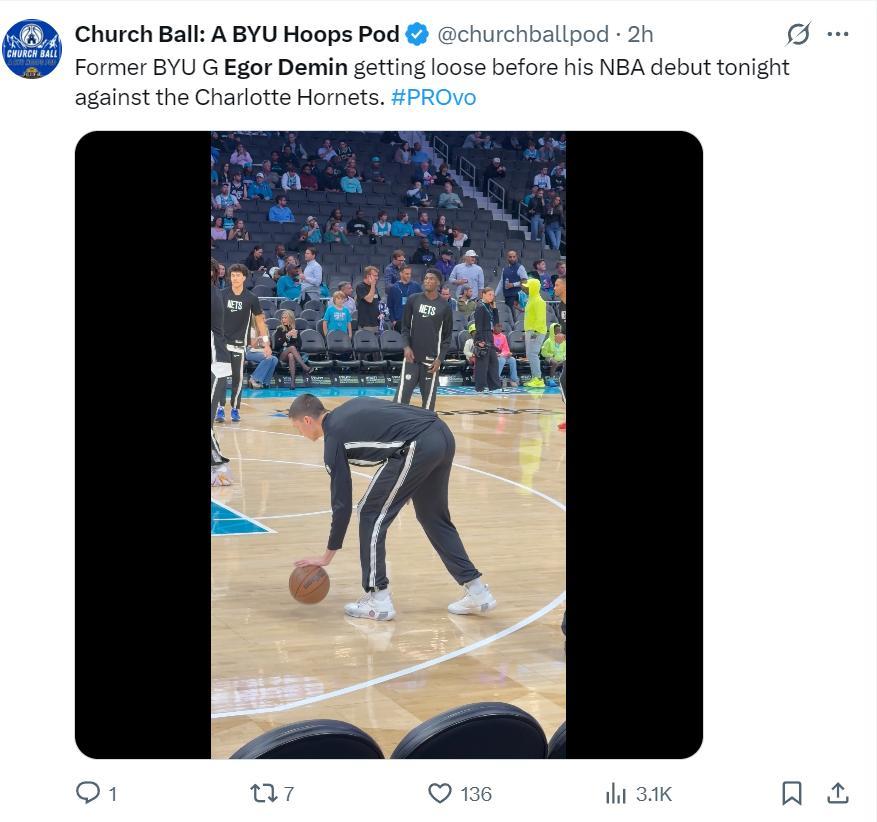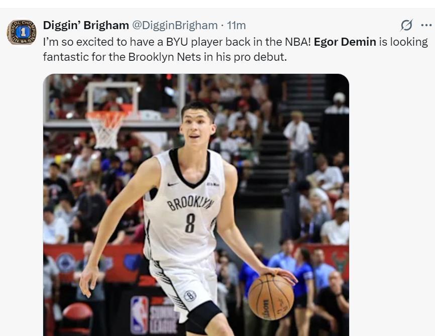 楊百翰大學:能看到楊百翰大學又有球員在NBA打球我感到非常興奮,傑明在籃網的首秀髮揮非常出色。