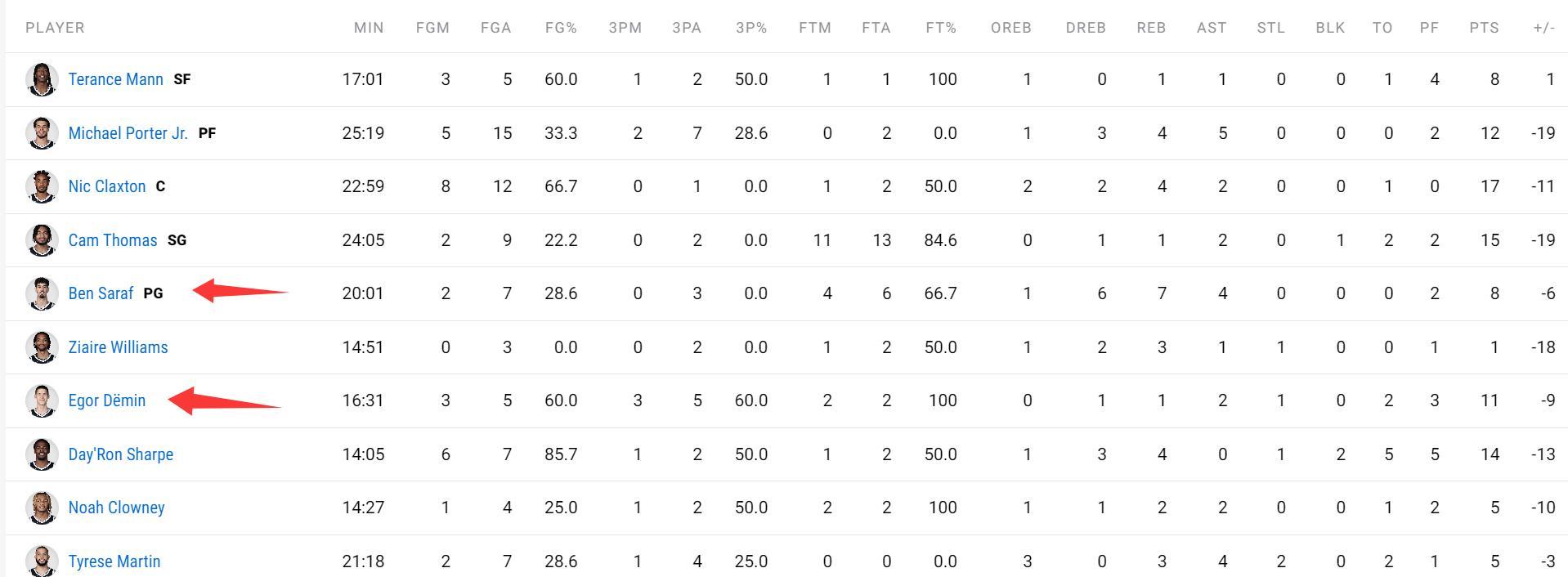 先發的一號位薩拉夫只有7中2+三分3中0,拿到8分7籃板4助攻,他的表現比傑明差太多了,傑明應該早一些深入先發,因爲他就是有投籃的本-西蒙斯,這位俄羅斯天才少年必然會成爲籃網的基石。