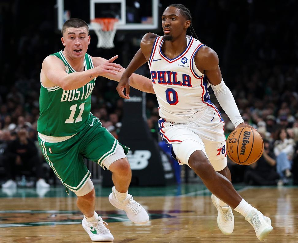 此役費城的馬克西、恩比德都登場,三巨頭只有喬治還在養傷,不過費城還有一個新科探花埃奇庫姆,首節埃奇庫姆就給馬祖拉上了一課,單節9中5+三分6中3拿到14分2助攻(超越詹姆斯成爲新秀首節得分王),突破到籃下暴扣技驚四座。馬克西首節只有3分,恩比德首節4中0沒得分,費城全靠探花郎。綠凱則是繼續打團隊籃球。