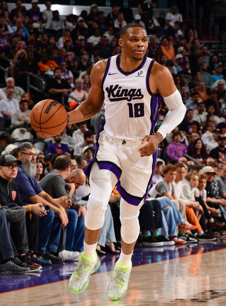 這場比賽是拉塞爾-威斯布魯克在國王隊的首秀,此前的季前賽他一場都沒打,他在首節還剩5分鐘時替補登場,他是打施羅德的替補,可登場後兩個中投都未能命中,首節0分,他國王的第一分來自第二節的一次籃下2+1,可這一球后他又是一波3中0,僅僅半場6中1拿3分5籃板1助攻1蓋帽。
