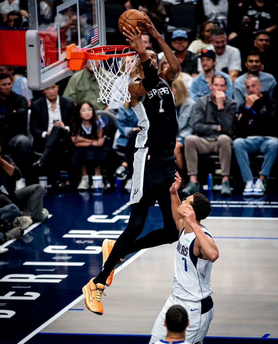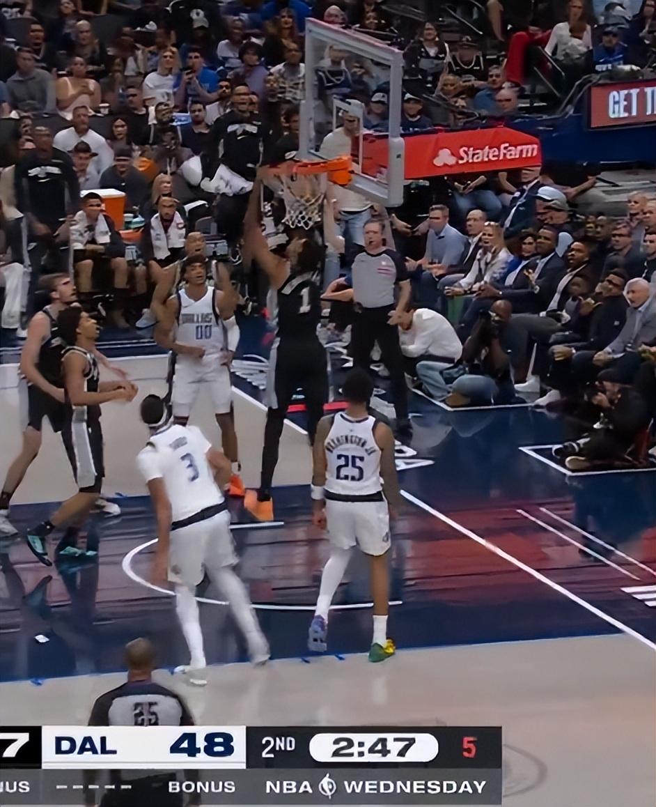 末節文班亞馬登場就在籃下命中,文班亞馬再度籃下暴扣,他已經拿到40分兩隊的分差也在26分,獨行俠這邊先換下了主力,馬刺這邊也很快換下主力,文班亞馬是一波4中4太輕鬆了,能力、天賦、技巧都明顯高出其餘球員一個檔次。