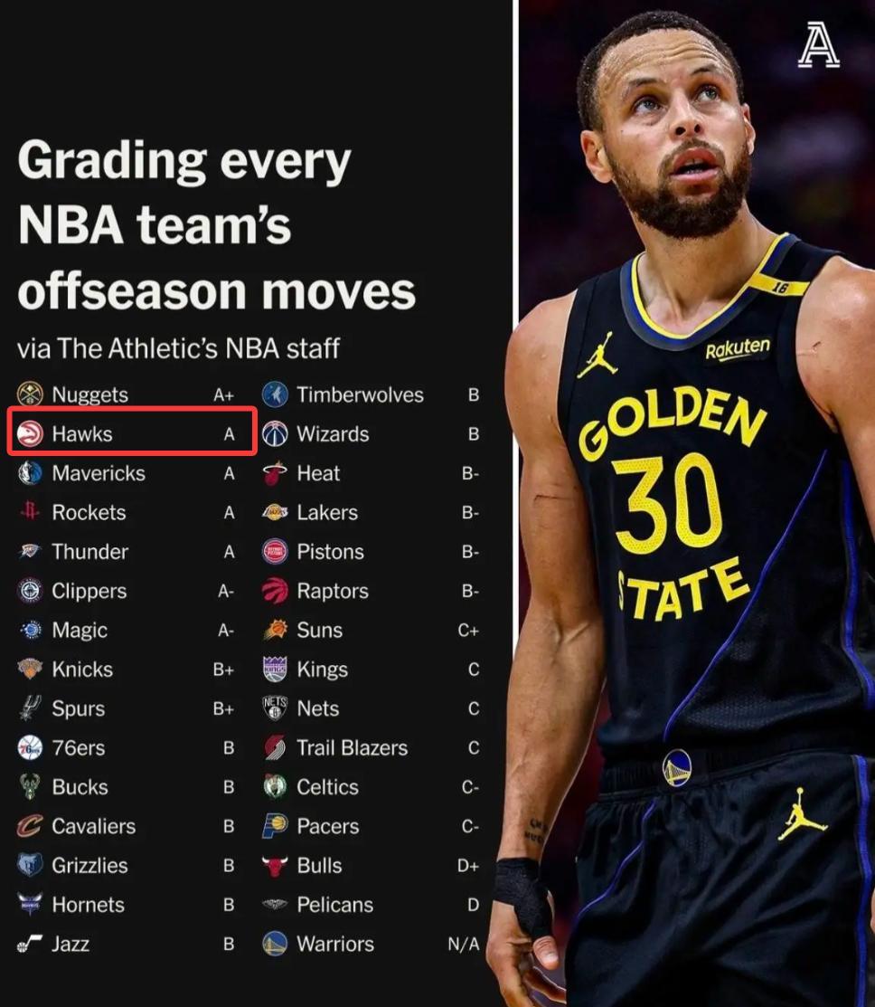 在TA這裏掘金A+第一,老鷹、獨行俠、火箭、雷霆都是A,老鷹作爲一支手握雙A評級的球隊季前賽1勝3負就算了,常規賽第一場還敗給上賽季30勝52負連附加賽都沒有資格的猛龍?