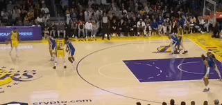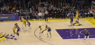 打到後面,湖人終於勉強繃緊了退防這根弦,可在庫裏和勇士隊面前,這點程度的退防還是漏洞百出。這回合的湖人先是漏了遠端底角的理查德,急得斯瑪特在弧頂大力招手,八村塁本來想補底角,可他忘了庫裏就在眼前,只能眼睜睜看着庫裏好整以暇地運一步調整姿勢,穩穩投進三分。