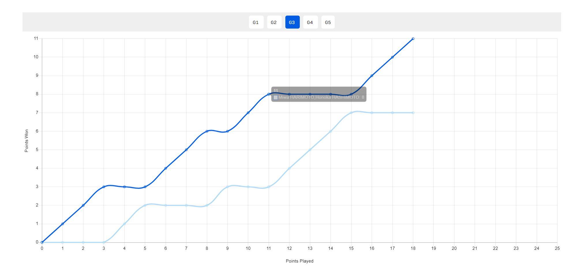 豈料第四局開場張本/橋本4-8落後,兩人奮力追到打到8-8、10-10,面對關鍵分兩人都出現了失誤,張本/橋本的最強組合讓勝利從手中溜走。