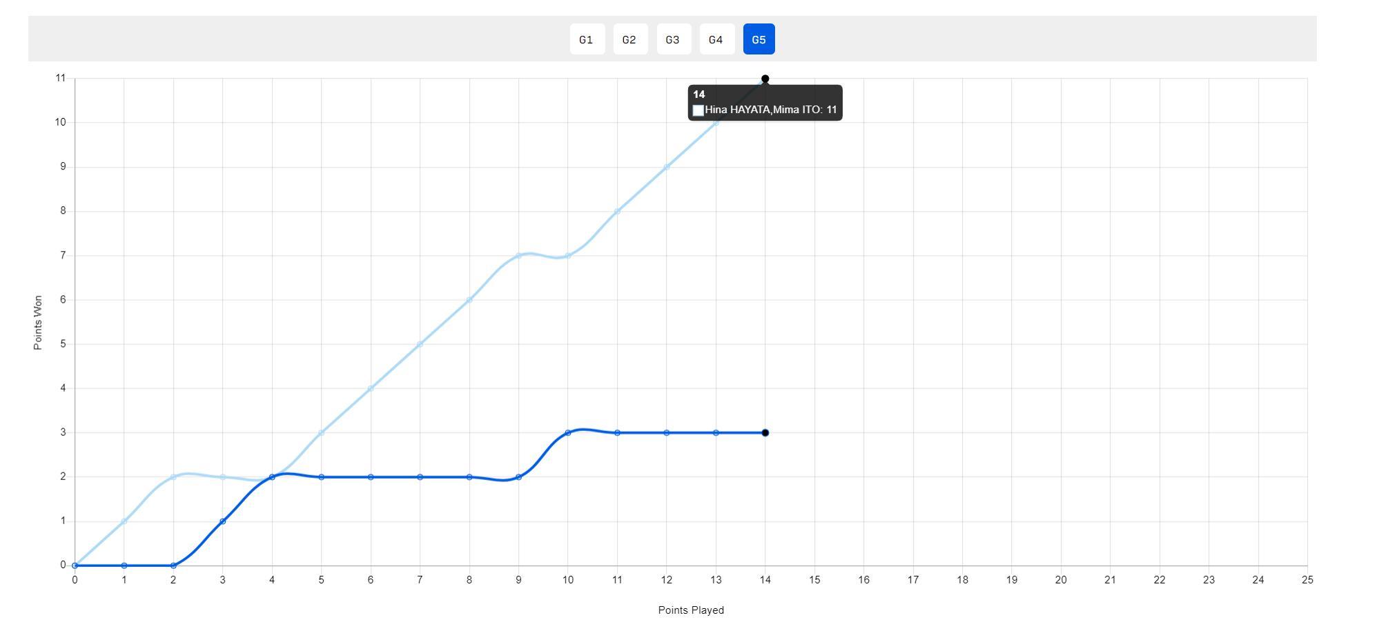 決勝局張本美和/橋本帆乃香是直接崩盤,兩隊打到2-2後,早田/伊藤打出5-0的攻勢直接拉開到7-2,隨後就是一波流帶走比賽。