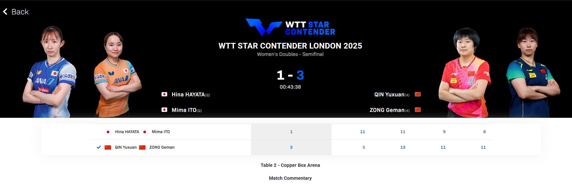 更爲慘烈的是伊藤美誠剛剛在女雙決賽中也吞下了失利,北京時間10月25日凌晨,早田希娜/伊藤美誠3-1不敵縱歌曼/覃予萱,四局比分:11-9、11-13、9-11、8-11無緣決賽,伊藤美誠/早田希娜在大比分1-0領先的情況下連丟三局。