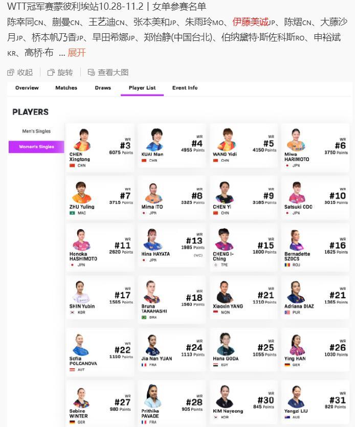 接下來伊藤美誠將出戰法國蒙彼利埃冠軍賽、德國法蘭克福冠軍賽,這兩站賽事的積分對於伊藤美誠來說也非常重要,伊藤美誠日乒第二把交椅能否坐穩就要看這兩站了。