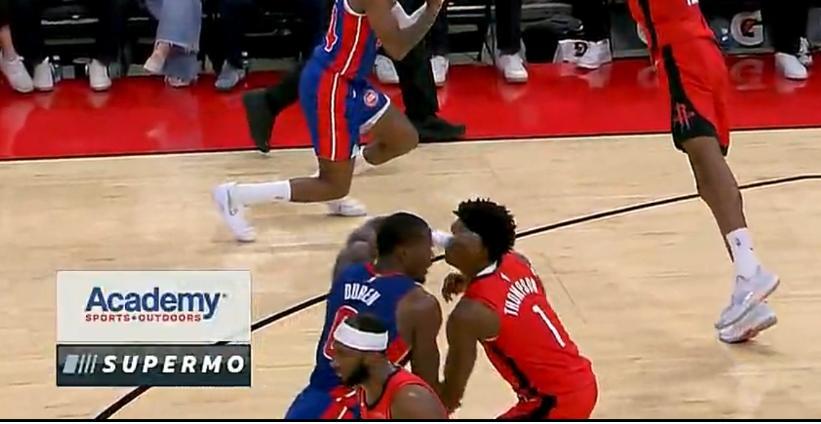 北京時間10月25日,火箭主場VS活塞,這場比賽兩隊的對抗非常激烈,第二節杜倫與阿門發生了衝突,杜倫先是推搡了阿門一把,下一個回合杜倫直接肘擊阿門頭部,裁判看了回放後給了杜倫二級惡意直接驅逐,他成爲新賽季第一個被驅逐的球員。