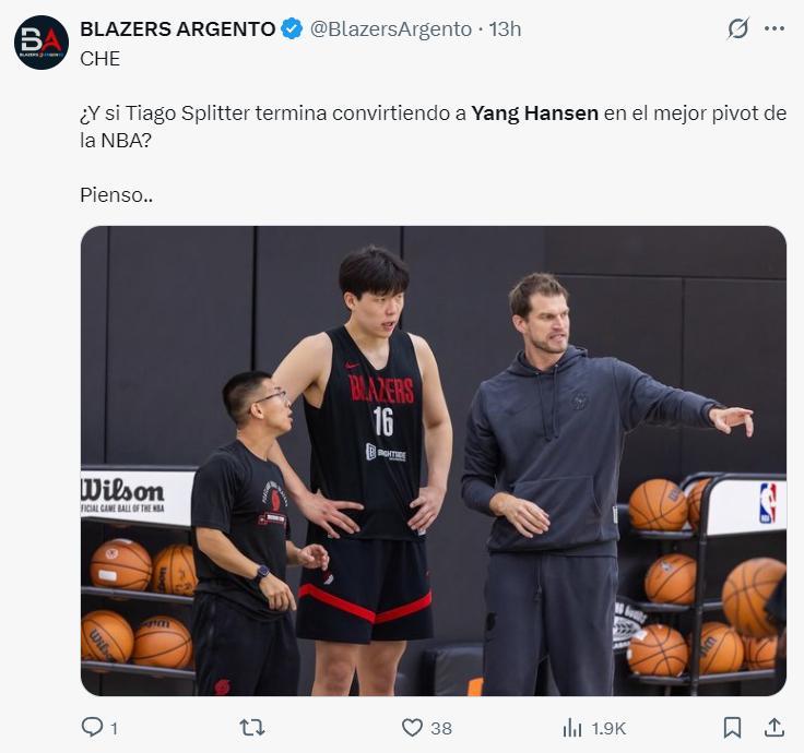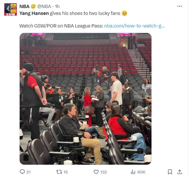 賽前楊瀚森將他的球鞋送給了一位小球迷,NBA官方都十分的羨慕,這說明小楊的影響力的確已經形成一定的規模。