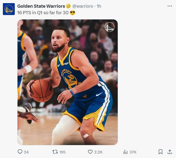 庫裏在昨夜對陣掘金的比賽中37分鐘,25中14+三分12中6拿到42分7助攻6籃板3搶斷,他幫助勇士逆轉掘金拿到二連勝,此役是37歲庫裏背靠背的第二場,他首節8分鐘裏9中6+三分6中4拿到16分1籃板。