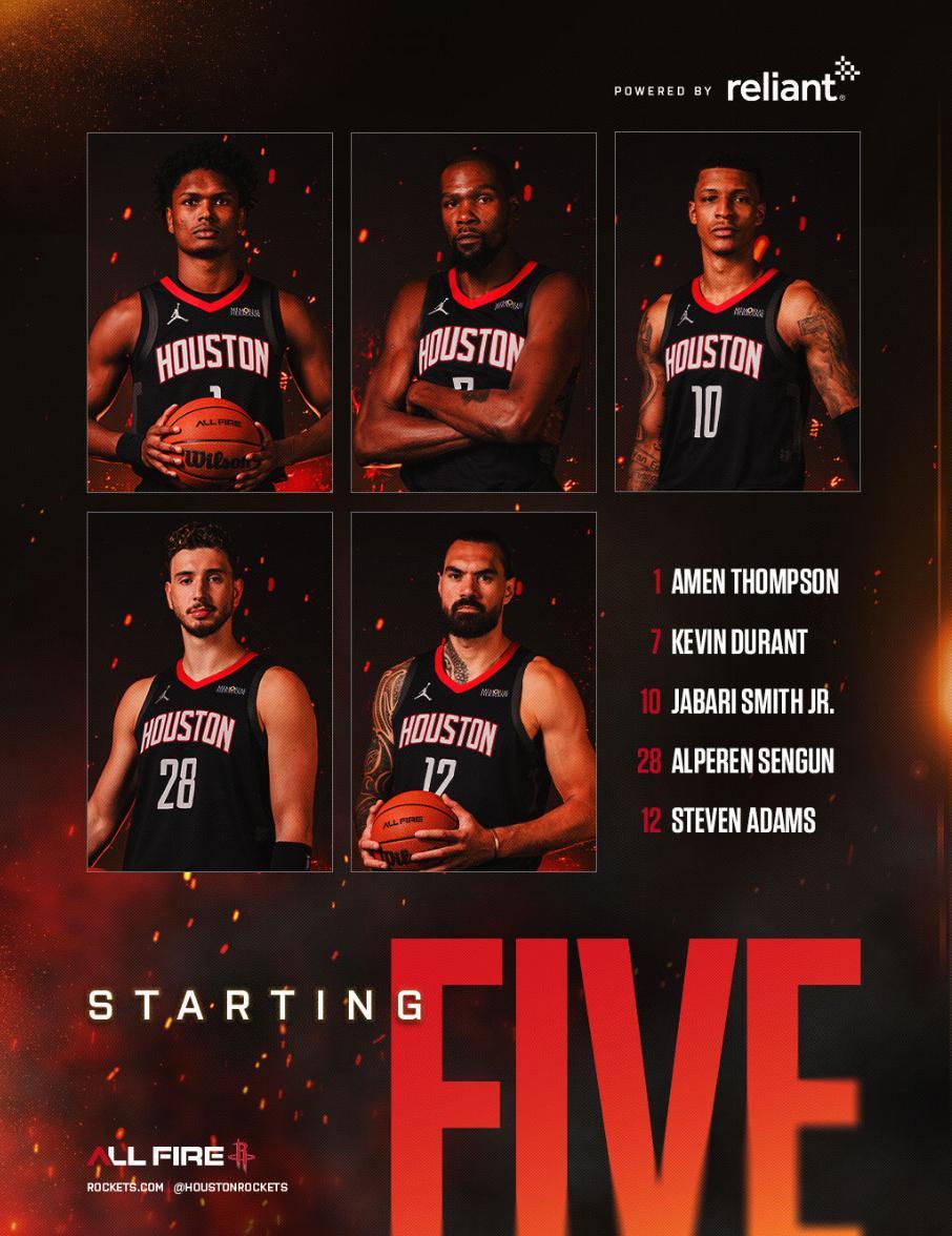 火箭這兩場比賽杜蘭特場均30分6籃板2助攻1.5搶斷,真實命中率67.3%,三分命中率42.9%,罰球命中率87.5%,他作爲防守者時對手合計21中3,杜蘭特如此出色的攻防表現火箭卻吞下二連敗!
