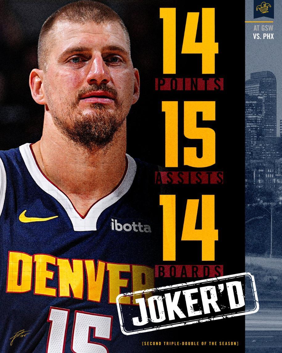回到主場的第一場比賽約基奇一反常態,他首節沒有任何一次出手專心串聯球隊,次節纔出手第一次,約基奇的無私幫助球隊大比分領先太陽隊,約基奇應該是知道自己外線的手感還沒有修正過來所以主動減少進攻。