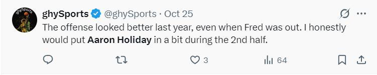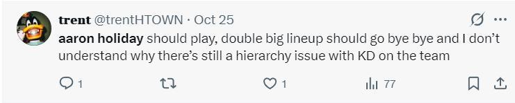 不少的火箭球迷都對烏度卡啓用霍勒迪的做法表示不滿: