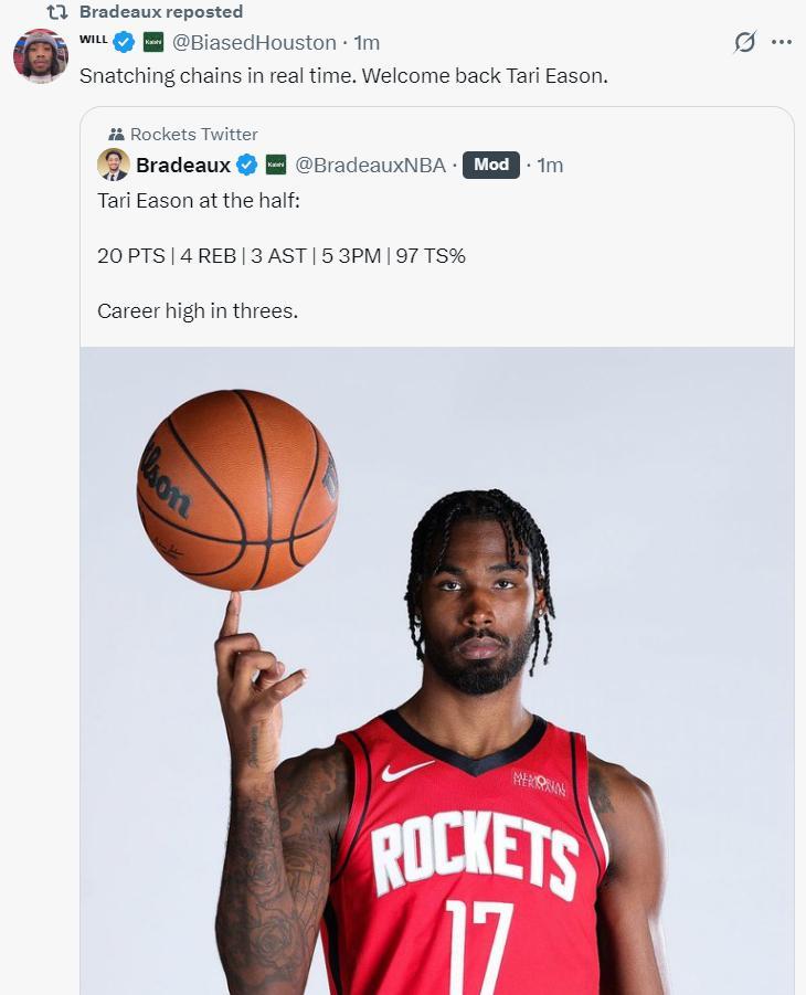 次節開場伊森助攻卡佩拉命中,伊森持球突破又造犯規,伊森第三個三分球命中,馬丁三分命中,小波特三分也中,伊森命中第四個三分,伊森隔着兩人上籃命中。薩拉夫三分也命中,托馬斯迎着KD的防守三分命中,申京助攻小賈三分,伊森第五個三分命中,半場打完火箭還領先籃網11分。