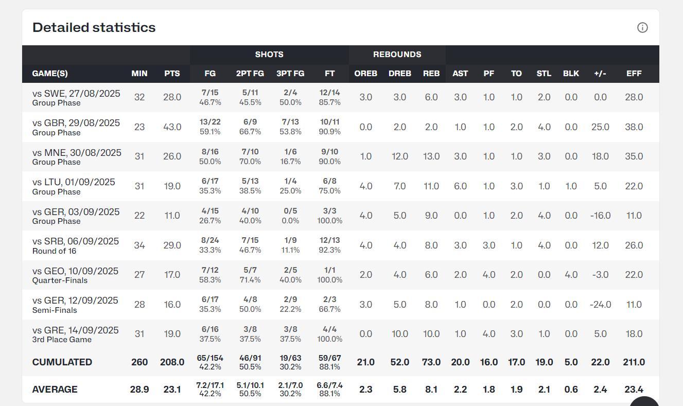 馬爾卡寧是真正的北境之王,他在芬蘭男籃的表現十分完美,今夏歐洲盃場均28.9分鐘,拿到23.1分8.1籃板2.2助攻2.1搶斷0.6蓋帽,命中率42.2%,三分命中率30.2%。進入新賽季後馬卡的表現也很出色,過去的兩場比賽已經拿到53分。