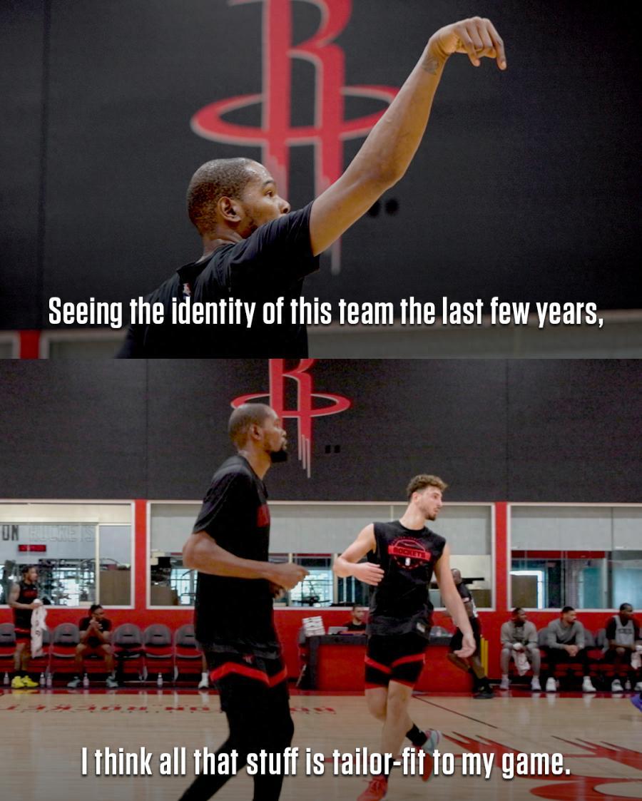 北京時間10月29日,休斯頓火箭隊官方發佈了球隊的訓練視頻,不過在視頻中有一些球員們的自述,比如杜蘭特說看到這支火箭隊過去幾年的表現,我認爲它是最適合我的球隊。