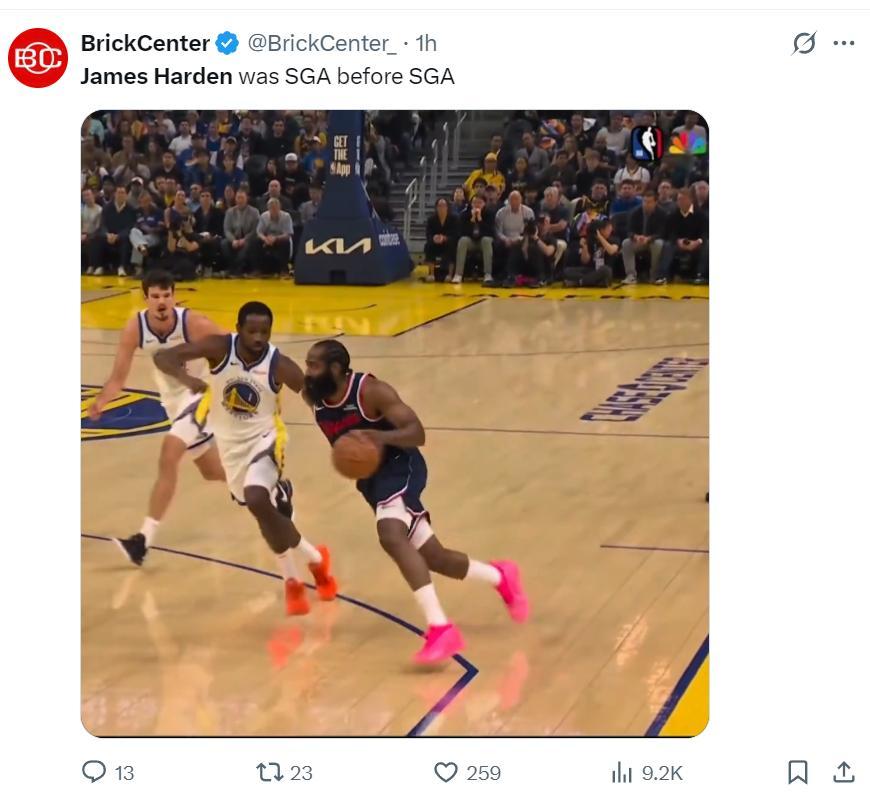 這場比賽哈登有一個碰瓷的動作被美媒Brich Center抓住,他寫道:在SGA碰瓷成名之前,哈登就已經在這個領域成名了。