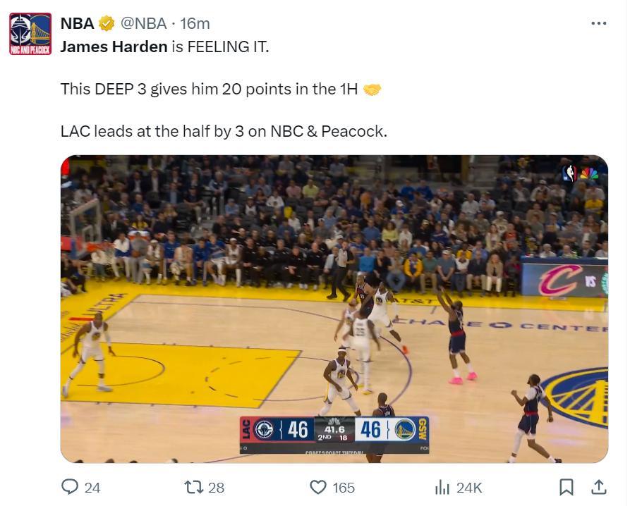 哈登上半場是火力全開,超遠的轉換三分都命中,單是第一節哈登就單節拿到13分,上半場拿到20分但是沒有助攻,這是哈登自19火箭時期後首次出現,難道19哈登歸位了?