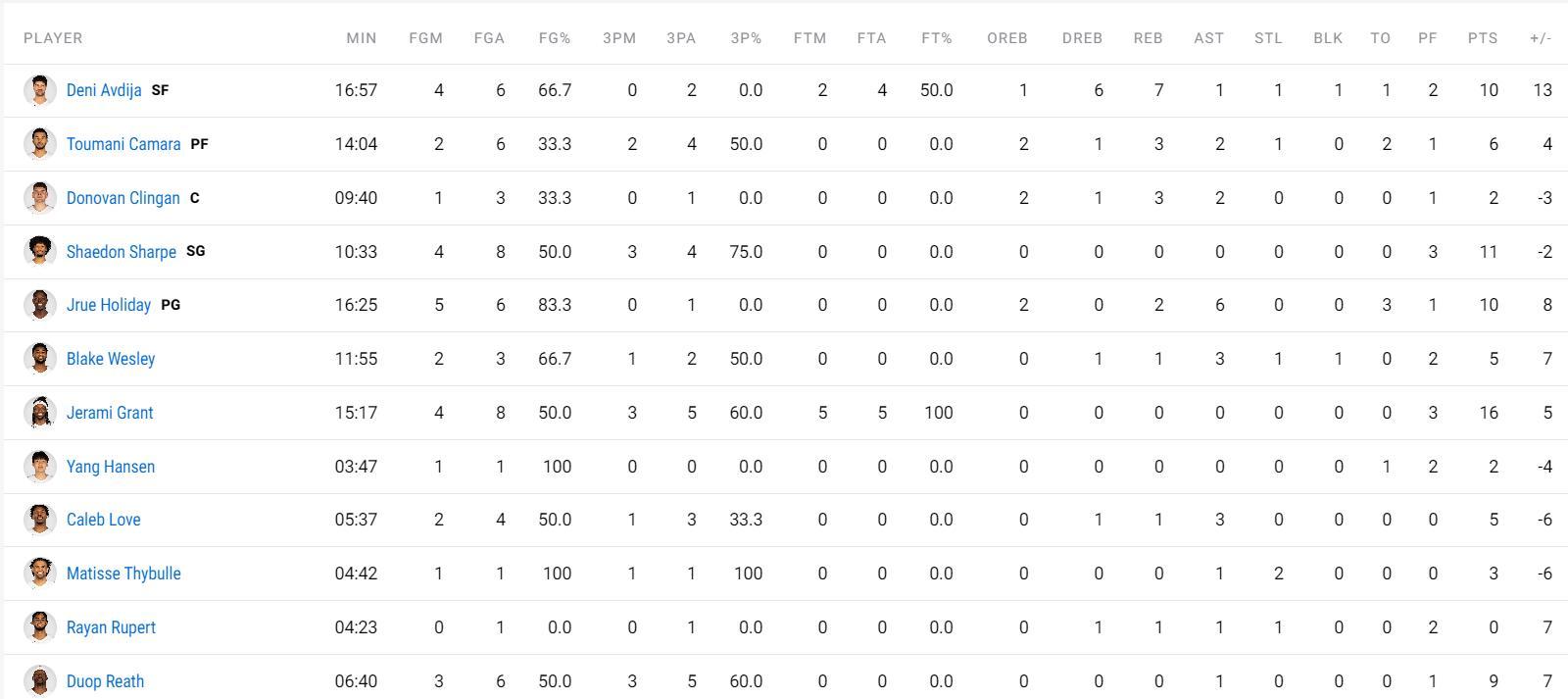 楊瀚森在青島時期的隊友里斯此役在第二節也得到了輪換時間,他不僅能送出助攻還能外線發炮,里斯4分鐘裏命中兩個三分球,他幫助開拓者打出10-0反超爵士。里斯在弧頂的三分再度命中,他單節命中三個三分球,里斯6分40秒三分5中3拿到9分1助攻0失誤。