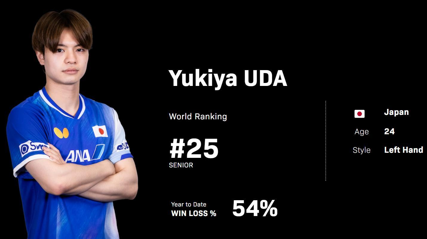 宇田幸矢今年24歲,世界排名第25,他國際賽場勝率只有54%,他的硬實力跟世界排名第四+頭號種子的張本智和比肯定要差一些,此前兩人在國際賽場的交手也是宇田0勝3負,此役後就是4連敗。