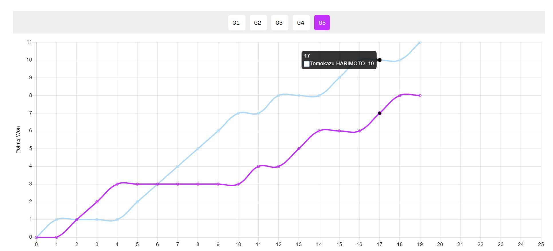 決勝局兩人3-3開局,隨後張本智和直接是一波4-0拉開差距,宇田追到8-10已經大勢已去,他就這樣被張本智和逆轉了。