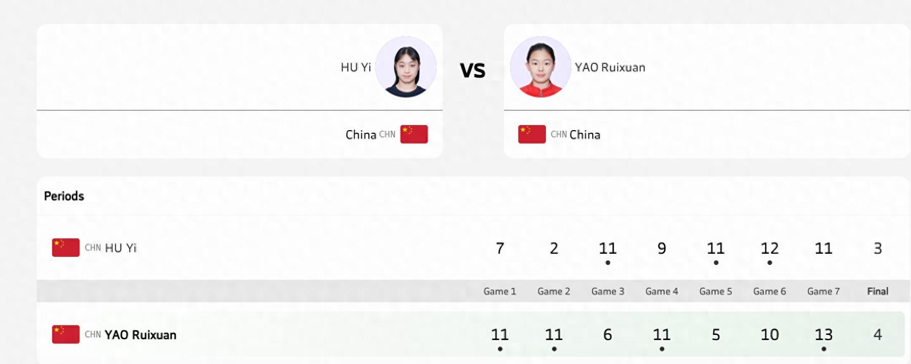 姚睿軒4-3胡一【11-7,11-2,6-11,11-9,5-11,10-12,13-11】