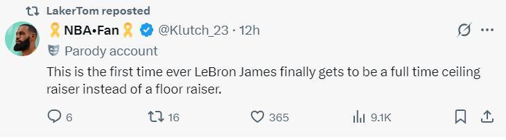 詹姆斯首次能夠真正成爲一名全職提升球隊上限的球員,而非繼續爲一支球隊託底的球員。(他的意思就說明了,勒布朗不會成爲湖人的拖累,詹姆斯會決定這支球隊的上限)
