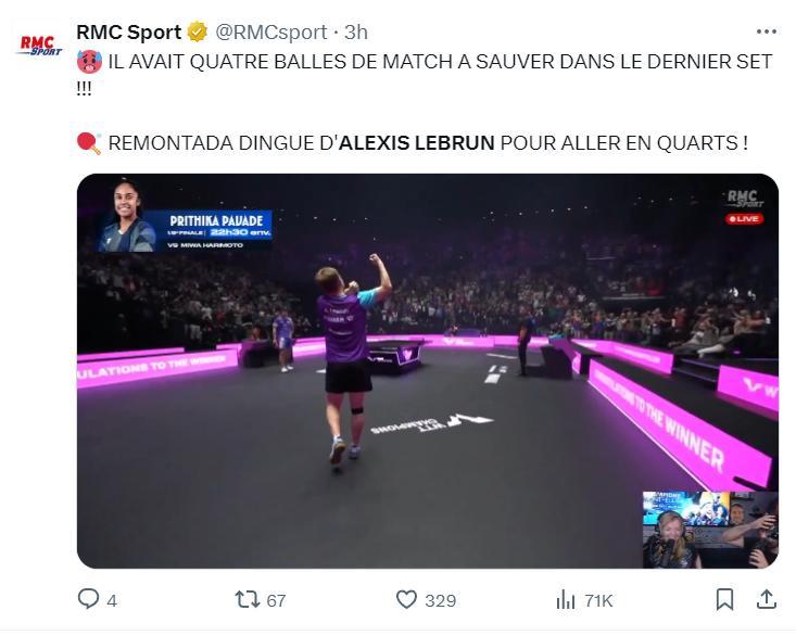WTT官方也曬出了賽後大勒的慶祝畫面,世界排名第13的大勒在0-2落後,決勝局6-10落後的情況下能逆轉,這在法國乒乓球歷史都是一場史詩級的比賽,大勒創造了奇蹟。