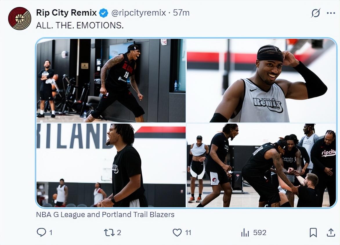 一小時前混音隊剛剛發佈了球隊的合訓圖集、視頻,從這些圖片、視頻中還沒有看到楊瀚森的身影,這說明開拓者6小時前官宣小楊被下放,楊瀚森纔出發前往混音隊,大概率就是在混音訓練一天又回到波特蘭。