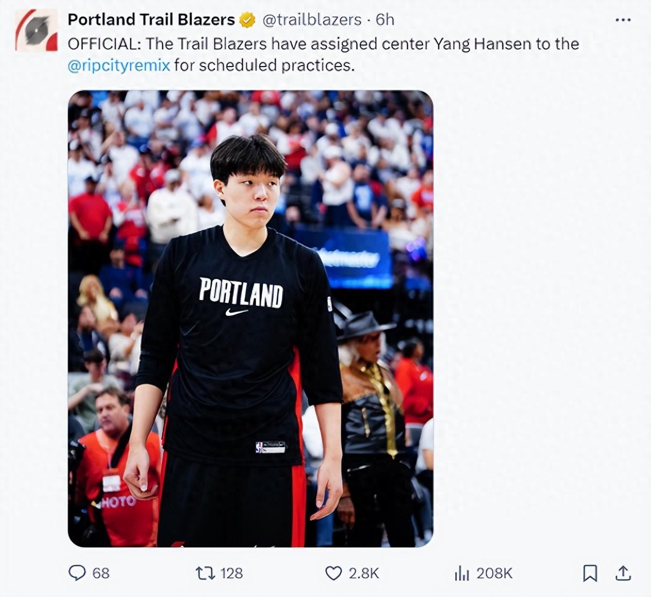 北京時間11月2日,波特蘭開拓者官方宣佈將2025年首輪16號秀楊瀚森下放到發展聯盟球隊訓練。(開拓者的下屬G聯賽球隊是撕裂之城混音隊)