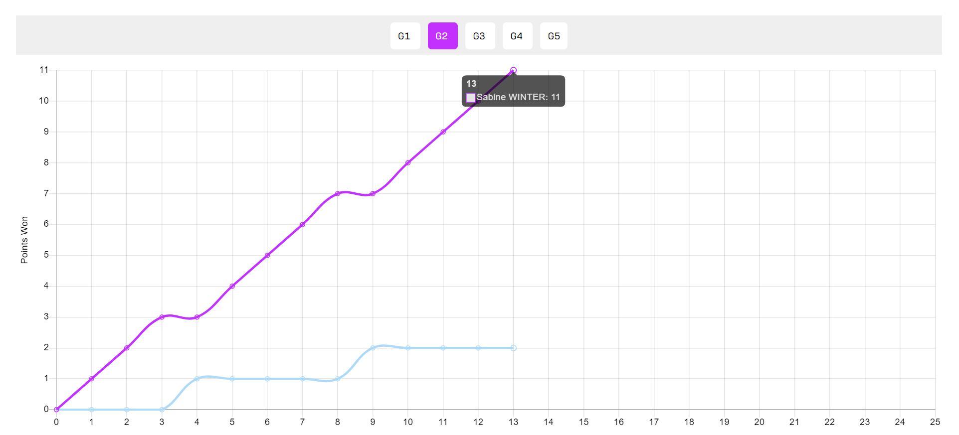 2025年WTT蒙彼利埃冠軍賽女單半決賽,德國選手溫特4-1擊敗韓國選手申裕斌晉級決賽,五局比分:11:7,11:2,11:8,8:11,11:6,也就是說溫特一直壓制申裕斌,溫特完成了一場爆大冷的比賽。