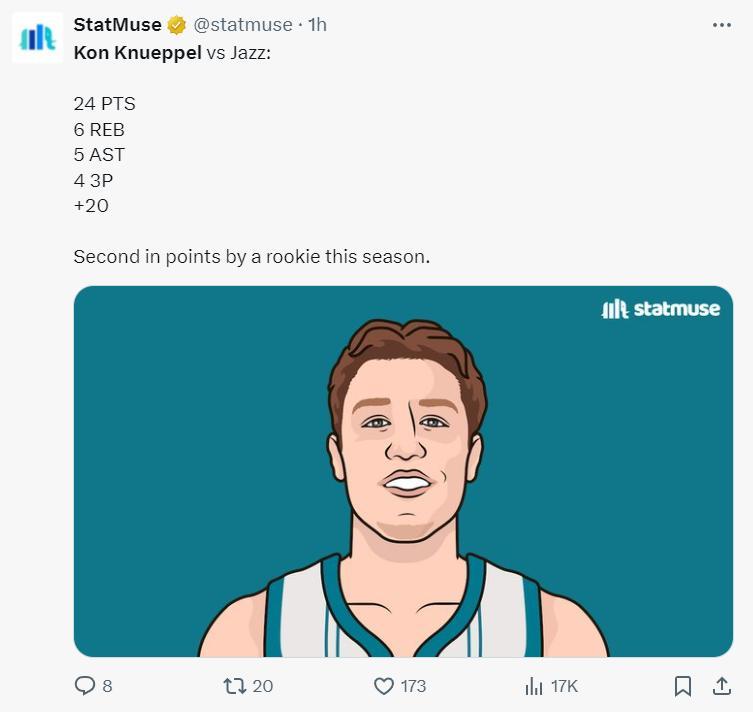 這場比賽克努佩爾也完成了一些紀錄:1.他拿到了本屆新秀截至目前的第二高分24分;