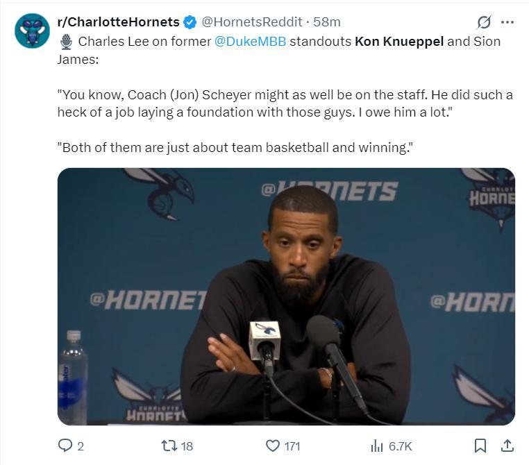 賽後主帥查爾斯-李同時稱讚了西恩、克努佩爾兩人,他覺得這兩人都是有能力在NBA打出風采的新秀球員。