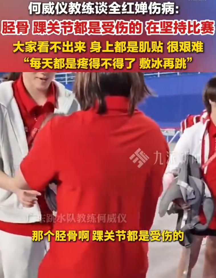 何威儀:全紅嬋每天都痛的受不了,敷完冰再跳,敷完冰再跳。大家看着她好像沒事,其實她是帶着傷和劇痛去跳的,帶傷去的。。。。。。