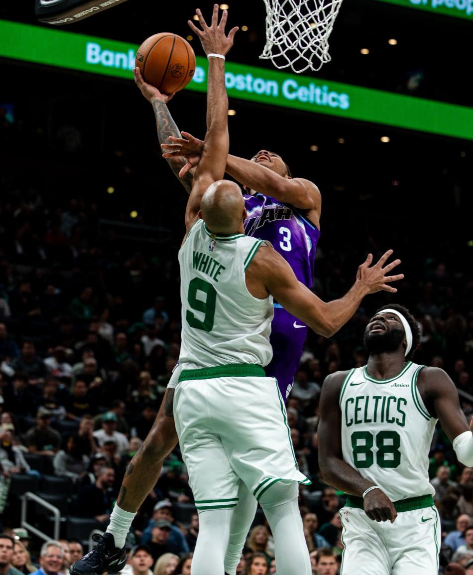 北京時間11月4日,猶他爵士以105-103逆轉波士頓凱爾特人。這場比賽綠凱在主場一度領先爵士14分之多,但第三節爵士隊的基揚特-喬治突然爆發,末節兩隊比分交替領先鏖戰至最後一刻,努爾基奇0.6秒準絕殺,布朗進攻犯規比賽完結。
