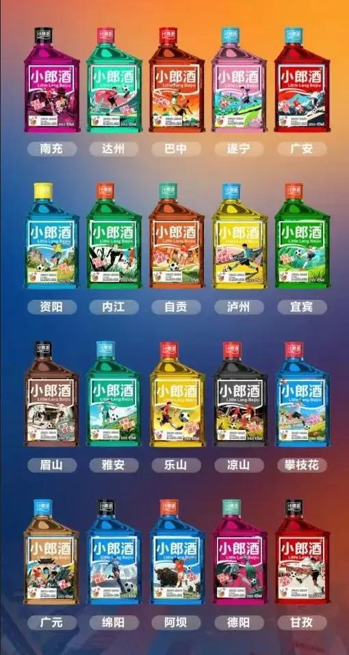 小郎酒以“一城一隊、一城一款”爲核心創意,將四川21座城市的特色符號與文化風物融入產品設計,讓每一瓶小郎酒都成爲承載城市記憶的“流動名片”。無論是成都的熊貓元素、綿陽的科技印記,還是樂山的美食符號,都通過精緻的瓶身設計得以呈現。展現了四川多元的地域文化。
