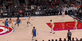 魔術的弧頂跑位戰術相當豐富,效果卻不敢恭維。擋拆打不出來,掩護接近無效,還喜歡把防守人往隊友身邊帶,三人在弧頂廝磨半天,老鷹的防守紋絲不動。