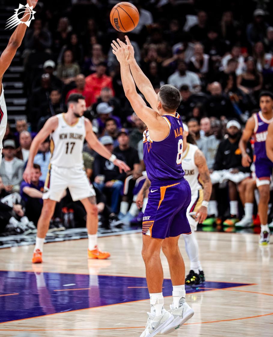 北京時間11月11日,太陽主場大勝鵜鶘,這場比賽是格雷森-阿倫的生涯之夜,也是菲尼克斯太陽隊載入史冊的一場比賽,因爲隊史單場9個三分球的紀錄被阿倫打破了。