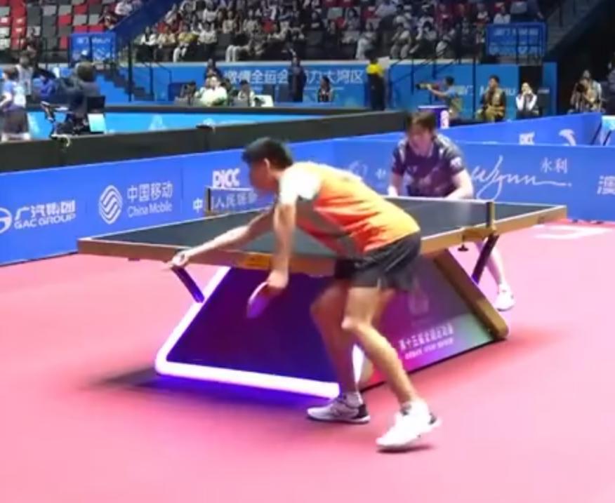 這場比賽的前兩局王楚欽就貢獻了諸多名場面,比如場地曝抽,這一板的威力與帥氣程度你們受得了嗎?無愧世界男單第一啊。