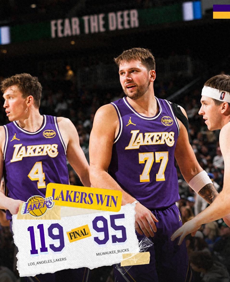 湖人背靠背第二場也贏了,還是119-95大勝雄鹿,這場比賽湖人一度領先雄鹿達到31分,雖然第三節開場雄鹿一波15-0瘋狂追分,但東契奇校正手感後湖人還是壓制雄鹿,最終東契奇41+9碾碎揚尼斯32+10。