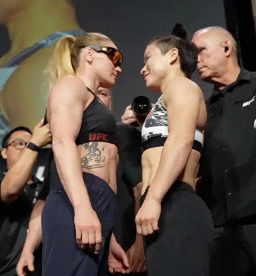 張偉麗是草量級的王者,在草量級裏張偉麗26勝3負且11次KO,防摔率高達80%,本次升重挑戰蠅量級拳王子彈姐吸引了全世界格鬥迷的目光,兩人在稱重儀式上都是124.5磅,兩人的肌肉都非常健碩。