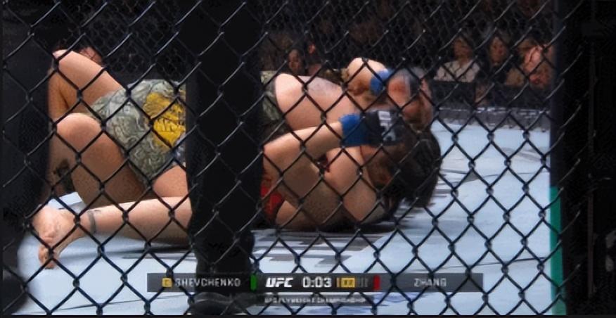 第二回合,張偉麗兩次主動進攻都被子彈化解,子彈這個移動速度真的快,舍甫琴科發力抱摔成功將張偉麗壓在身上,兩人地面的纏鬥,張偉麗明顯有些被動一直在護住自己,張偉麗守住背部,子彈繼續在上位找機會,張偉麗想起身沒成功,張偉麗兩隻手被夾住一直被迫防守,但時間到了,第二回合扛住了。