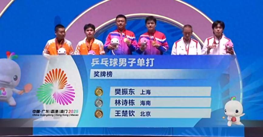 北京時間11月16日,全運會男單成年組圓滿落幕,上海隊樊振東冠軍,海南隊林詩棟亞軍,北京隊王楚欽季軍。樊振東衛冕男單冠軍成功,他也拿到全運會第六金刷新現役乒乓球選手金牌新高紀錄。