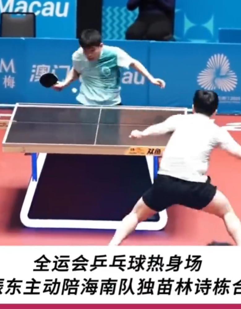 全運會的備戰小石頭靠自己的化緣保持競技狀態,樊振東主動與小石頭進行熱身訓練。
