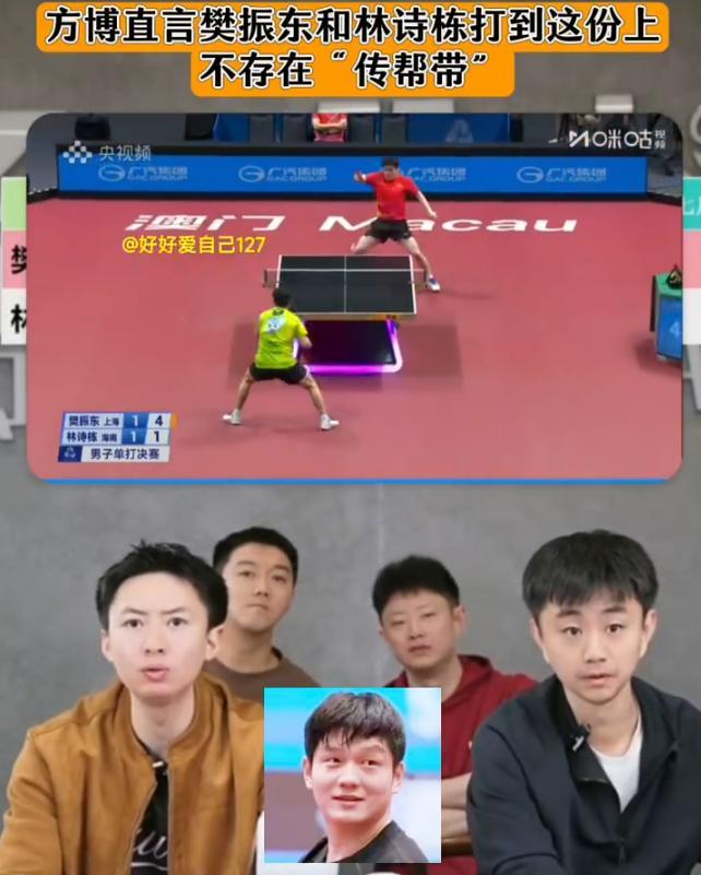 方博還在直播間說,小石頭沒有把樊振東的全部潛能激發出來,目前林詩棟還沒有這個能力,這不是極限的樊振東,小胖明顯留有空間,小石頭沒有給樊振東造成太大的壓力。決賽打到這裏不存在傳幫帶,雙方都會下狠手。