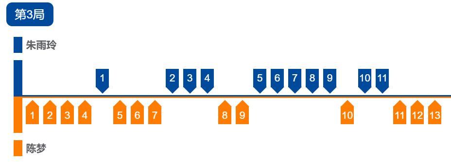 前兩局兩人戰成1-1,第三局就是小天王山,朱雨玲開場是7-1領先,隨後9-4大比分領先陳夢,陳夢居然連拿5分扳平,朱雨玲10-9率先局點,陳夢挽回兩個局點後逆轉太燃了。