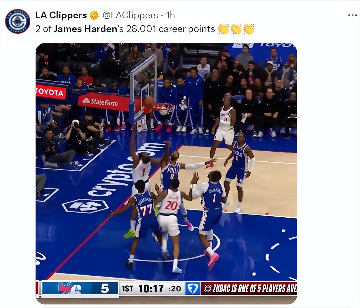 北京時間11月18日,快船背靠背第二場,詹姆斯-哈登迎來個人生涯28000分大關,他成爲歷史上第11位完成28000+的球員,只可惜這支快船還是輸球了,哈登吞下了里程悲,除了哈登之外一個穩定得分點都沒有,下半場哈登16中2還丟了兩個三分絕殺。