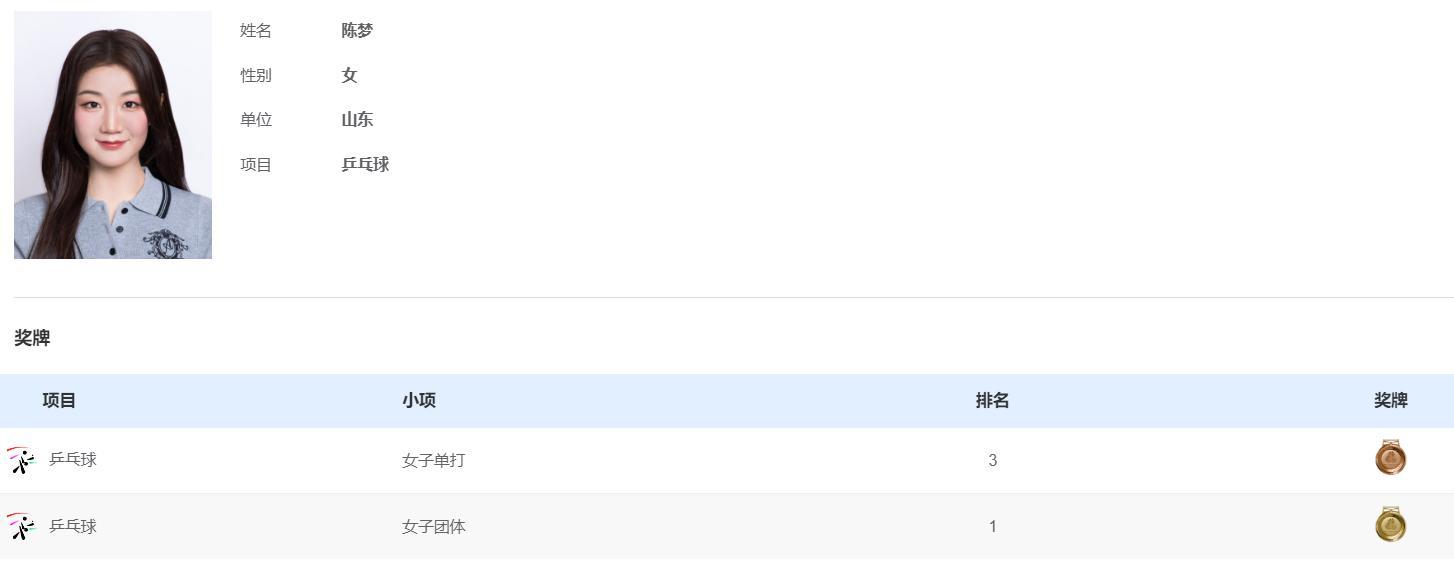 31歲的陳夢本次全運會是女單、女團兩個項目,最終女單拿到了銅牌,女團拿到金牌,這個成績已經非常好了。