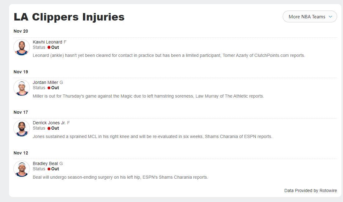 快船的比爾賽季報銷,瓊斯、米勒、萊昂納德都傷缺,殘陣快船靠哈登一人苦撐。